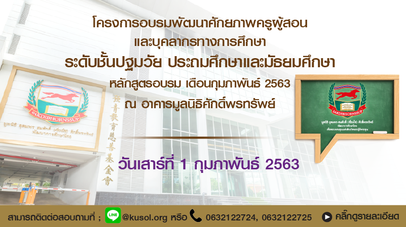 หลักสูตรอบรม วันเสาร์ที่ 1 กุมภาพันธ์ พ.ศ.2563