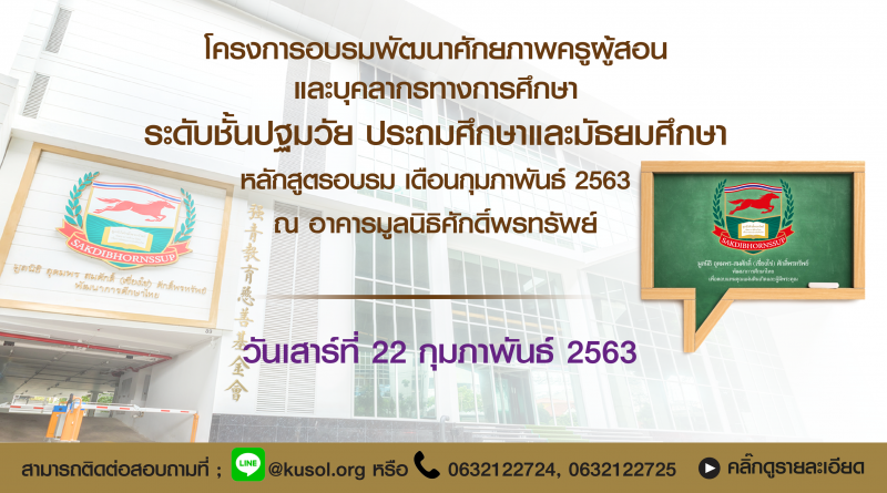 หลักสูตรอบรม วันเสาร์ที่ 22 กุมภาพันธ์ พ.ศ.2563