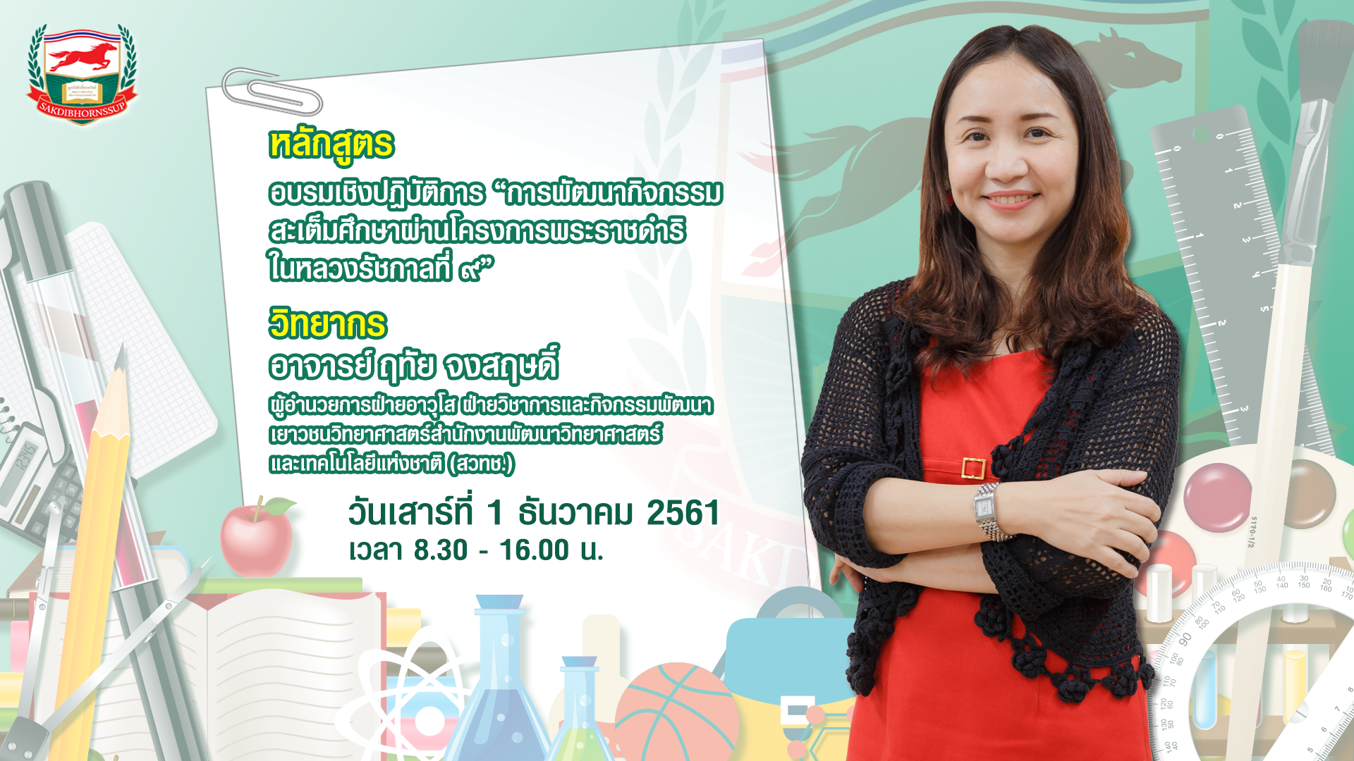 สกู๊ป และ ภาพบรรยากาศ หลักสูตร อบรมเชิงปฏิบัติการ “การพัฒนากิจกรรมสะเต็มศึกษาผ่านโครงการพระราชดำริในหลวงรัชกาลที่ ๙” วิทยากร อาจารย์ฤทัย จงสฤษดิ์