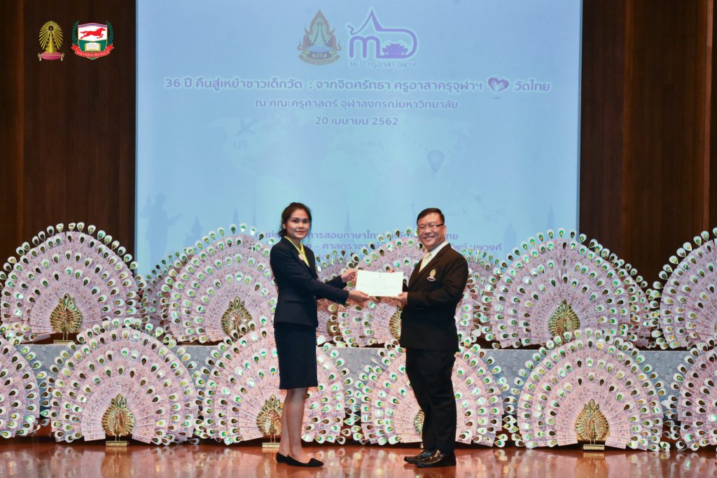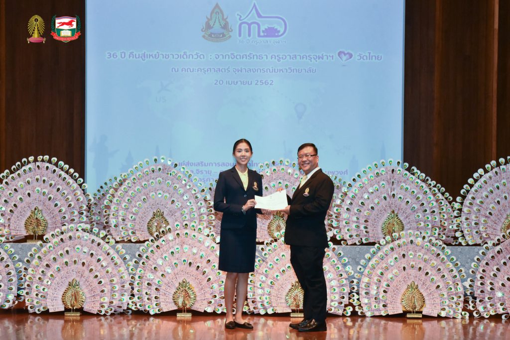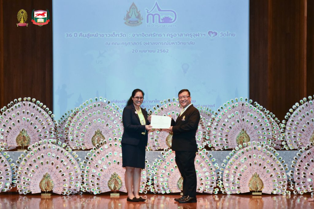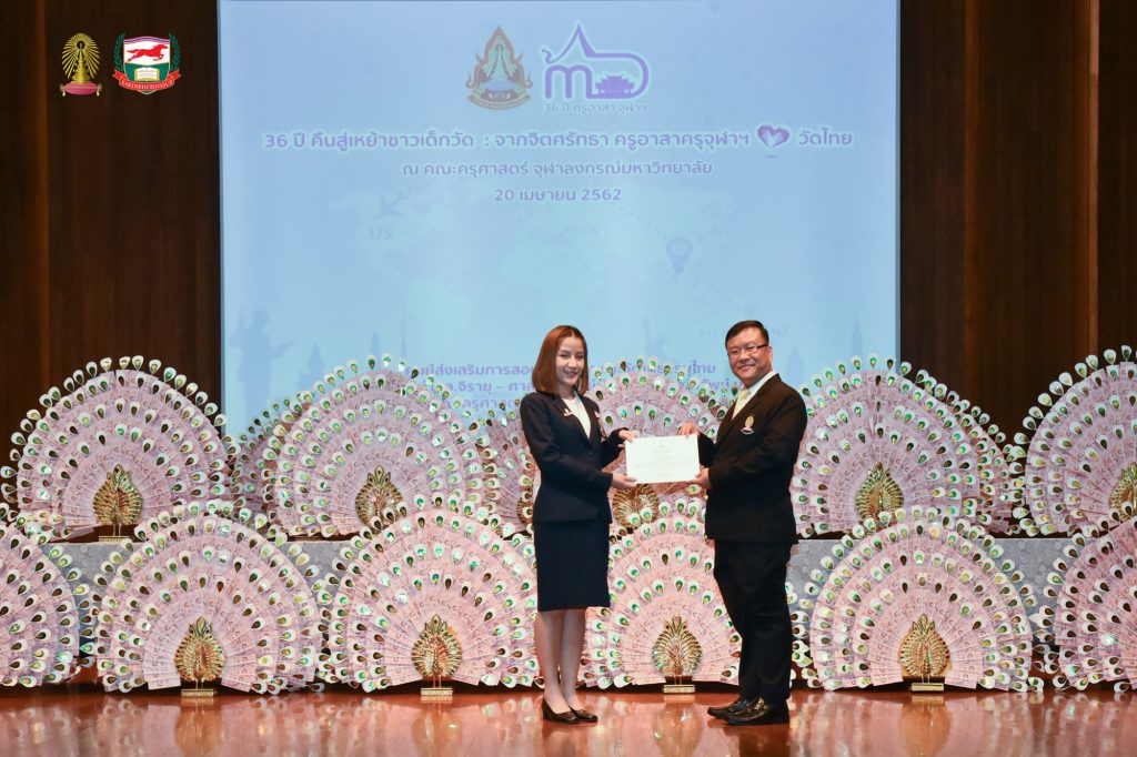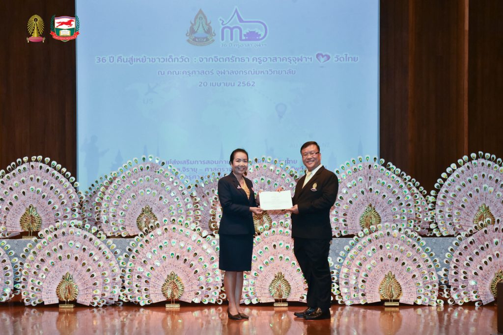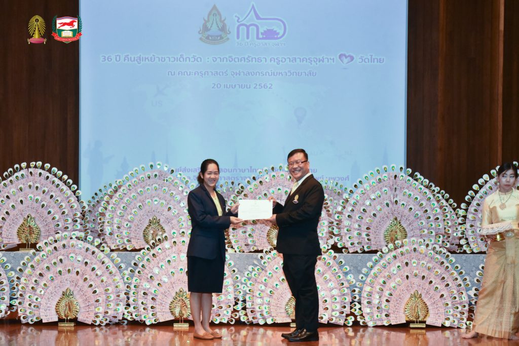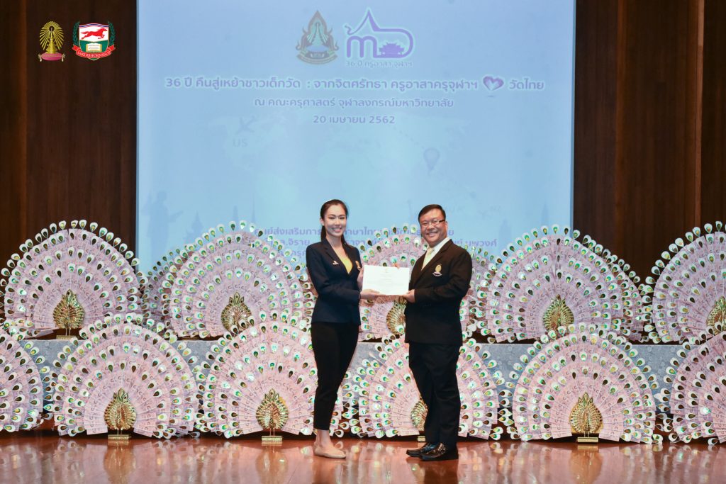 โครงการอบรมเชิงปฏิบัติธรรม อบรมเชิงปฏิบัติการและฐานกิจกรรม ครูอาสาสมัครเพื่อสอนภาษาไทยและวัฒนธรรมไทยในต่างประเทศ รุ่นที่ ๓๖ ประจำปี ๒๕๖๒ จัดโดยศูนย์ส่งเสริมการสอนภาษาไทยและวัฒนธรรมไทย ศาสตราจารย์ ม.ล.จิรายุ - ศาสตราจารย์ท่านผู้หญิงพูนทรัพย์ นพวงศ์ คณะครุศาสตร์ จุฬาลงกรณ์มหาวิทยาลัย อบรม ระหว่างวันที่ ๒๕ มีนาคม - ๒๘ เมษายน ๒๕๖๒ ณ ห้องอำไพ สุจริตกุล โรงเรียนสาธิตจุฬาลงกรณ์มหาวิทยาลัย ฝ่ายประถม คณะครุศาสตร์ จุฬาลงกรณ์มหาวิทยาลัย และต้นบุญธรรมสถาน จังหวัดชลบุรี สนับสนุนโดย มูลนิธิศักดิ์พรทรัพย์