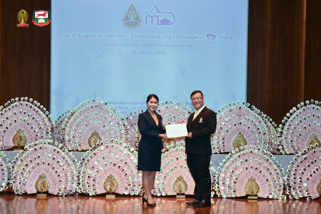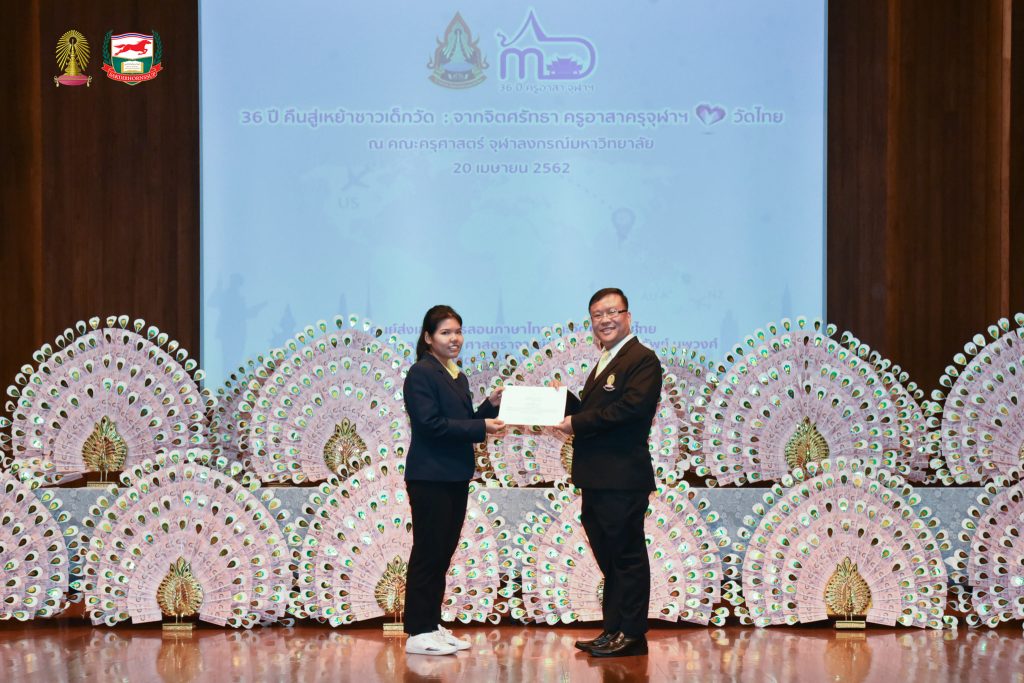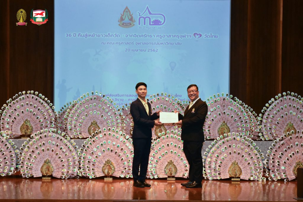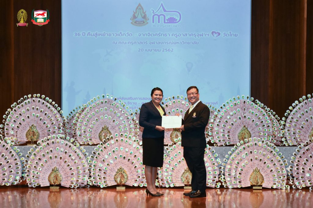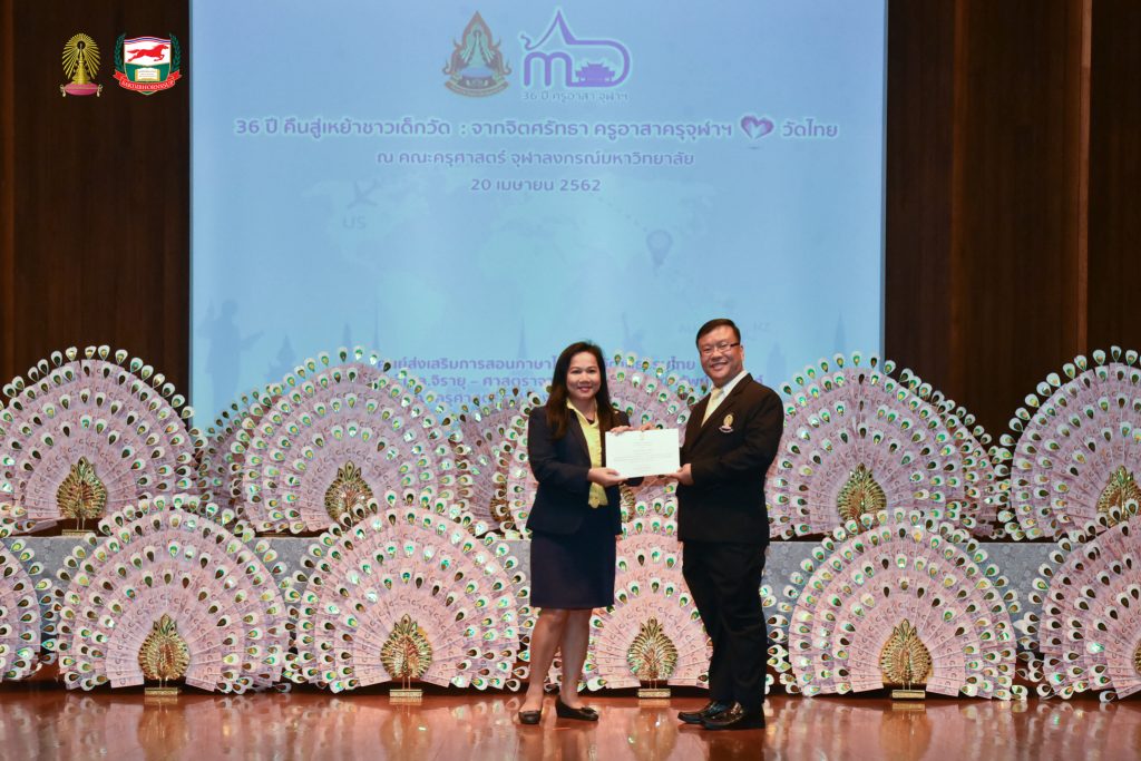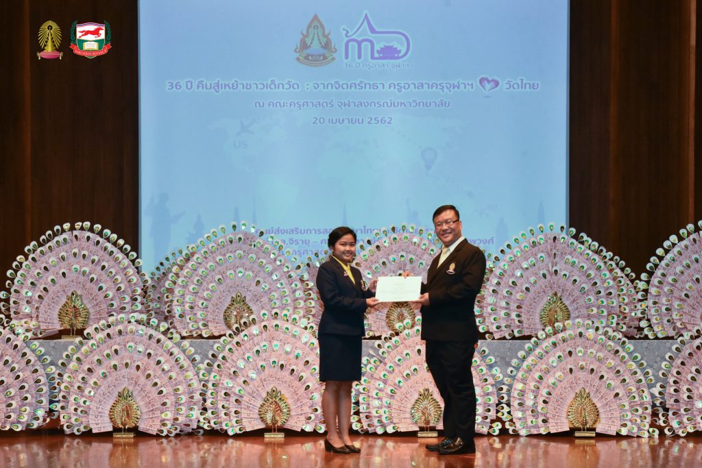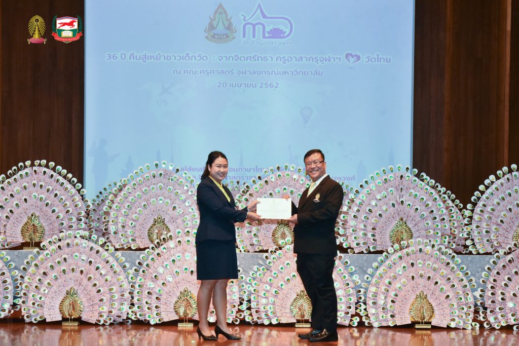 โครงการอบรมเชิงปฏิบัติธรรม อบรมเชิงปฏิบัติการและฐานกิจกรรม ครูอาสาสมัครเพื่อสอนภาษาไทยและวัฒนธรรมไทยในต่างประเทศ รุ่นที่ ๓๖ ประจำปี ๒๕๖๒ จัดโดยศูนย์ส่งเสริมการสอนภาษาไทยและวัฒนธรรมไทย ศาสตราจารย์ ม.ล.จิรายุ - ศาสตราจารย์ท่านผู้หญิงพูนทรัพย์ นพวงศ์ คณะครุศาสตร์ จุฬาลงกรณ์มหาวิทยาลัย อบรม ระหว่างวันที่ ๒๕ มีนาคม - ๒๘ เมษายน ๒๕๖๒ ณ ห้องอำไพ สุจริตกุล โรงเรียนสาธิตจุฬาลงกรณ์มหาวิทยาลัย ฝ่ายประถม คณะครุศาสตร์ จุฬาลงกรณ์มหาวิทยาลัย และต้นบุญธรรมสถาน จังหวัดชลบุรี สนับสนุนโดย มูลนิธิศักดิ์พรทรัพย์