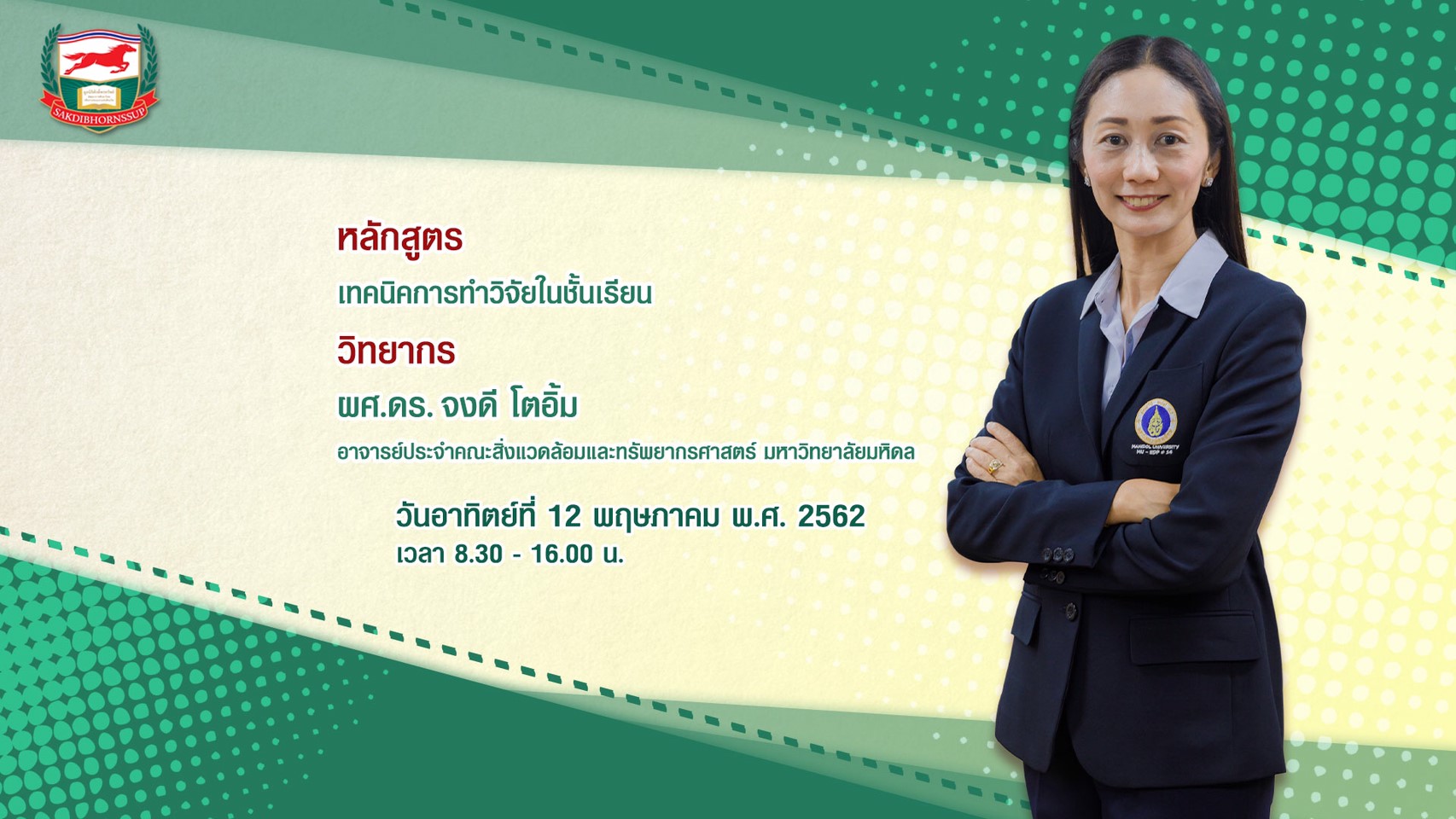 คลิปวิดีโอและภาพบรรยากาศการอบรม หลักสูตร:เทคนิคการทำวิจัยในชั้นเรียน วิทยากร : ผศ.ดร.จงดี โตอิ้ม อาจารย์ประจำคณะสิ่งแวดล้อมและทรัพยากรศาสตร์ มหาวิทยาลัยมหิดล วันอาทิตย์ที่ 12 พฤษภาคม พ.ศ. 2562 เวลา 08.30 - 16.00 น. ห้อง 406 อาคารมูลนิธิศักดิ์พรทรัพย์