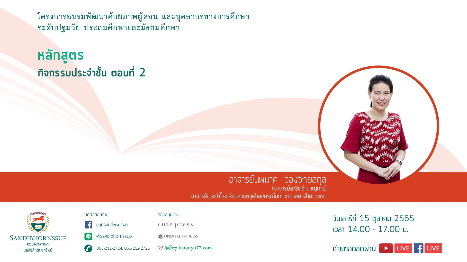 ประกาศรายชื่อผู้เข้าอบรมออนไลน์ : วันเสาร์ที่ 15 ตุลาคม 2565 เวลา 14.00 – 17.00 น. วิทยากร: อาจารย์นพมาศ ว่องวิทยสกุล