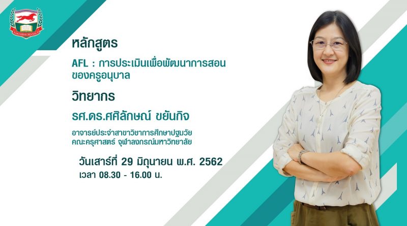 หลักสูตร : AFL : การประเมินเพื่อพัฒนาการสอนของครูอนุบาล วิทยากร : รศ.ดร.ศศิลักษณ์ ขยันกิจ อาจารย์ประจำสาขาวิชาการศึกษาปฐมวัย คณะครุศาสตร์จุฬาลงกรณ์มหาวิทยาลัย วันเสาร์ที่ 29 มิถุนายน พ.ศ. 2562 เวลา 08.30-16.00 น. ห้อง 403