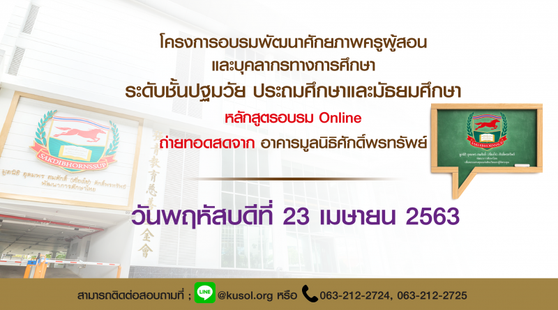หลักสูตรอบรมออนไลน์ วันเสาร์ที่ 23 พฤษภาคม พ.ศ.2563