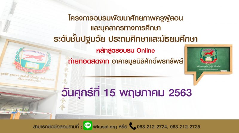 โครงการอบรมพัฒนาศักยภาพครูผู้สอนและบุคลากรทางการศึกษา ระดับปฐมวัย ประถมศึกษาและมัธยมศึกษา ประจำปี พ.ศ. 2563” วันเสาร์ที่ 23 พฤษภาคม 2563 เวลา 09.00 – 12.00 น. : 1 หลักสูตร เวลา 14.00-17.00 น.