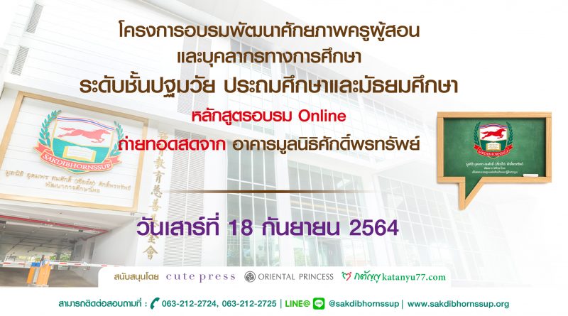 ประชาสัมพันธ์หลักสูตรอบรมออนไลน์ วันเสาร์ที่ 25 กันยายน 2564 : 12 หลักสูตร