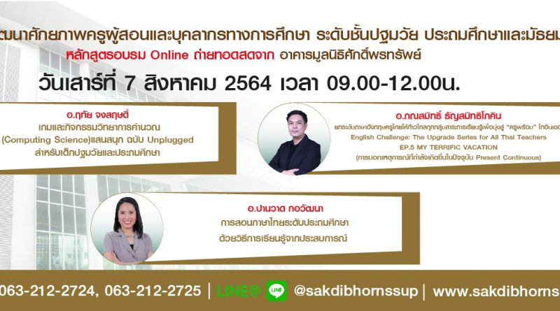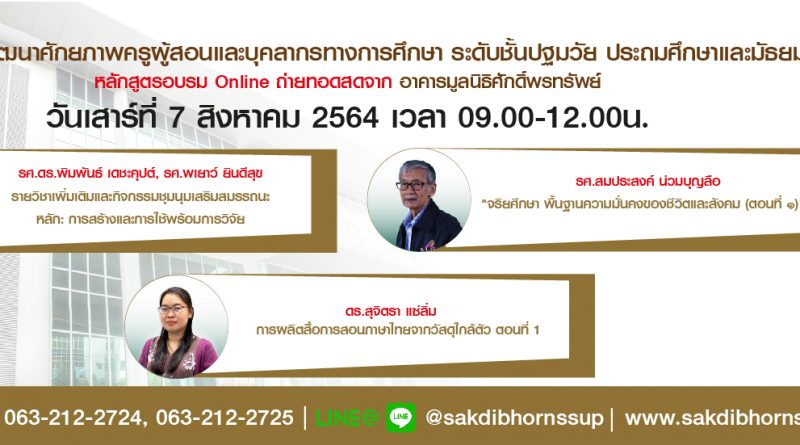 ประชาสัมพันธ์หลักสูตรอบรมออนไลน์ วันเสาร์ที่ 10 กรกฎาคม 2564 : 9 หลักสูตร