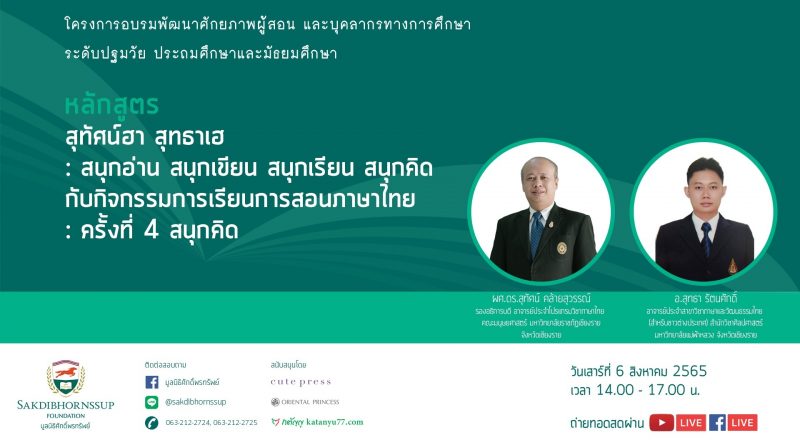 ประกาศรายชื่อผู้เข้าอบรมออนไลน์ : วันเสาร์ที่ 6 สิงหาคม 2565 เวลา 09.00-12.00 น. วิทยากร : รศ.ดร.อนุชิต จิตพัฒนกุล