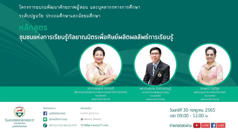 ประกาศรายชื่อผู้เข้าอบรมออนไลน์ : วันเสาร์ที่ 30 กรกฎาคม 2565 เวลา 9.00-12.00 น. วิทยากร : ศ.กิตติคุณ อัจฉรา ชีวพันธ์ – รศ.จรัสศรี พัวจินดาเนตร – อาจารย์กีฏะ เพิ่มพูล
