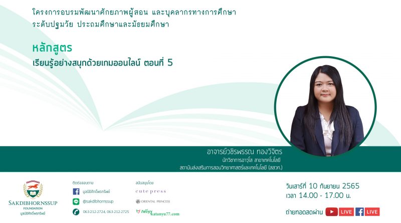 Read moreวันเสาร์ที่ 10 กันยายน 2565 เวลา 14.00 – 17.00 น. วิทยากร : อาจารย์วชิรพรรณ ทองวิจิตร หลักสูตร : เรียนรู้อย่างสนุกด้วยเกมออนไลน์ ตอนที่ 5 ประกาศรายชื่อ 👉👉 คลิก