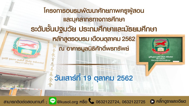 หลักสูตรอบรม วันเสาร์ที่ 19 ตุลาคม พ.ศ.2562